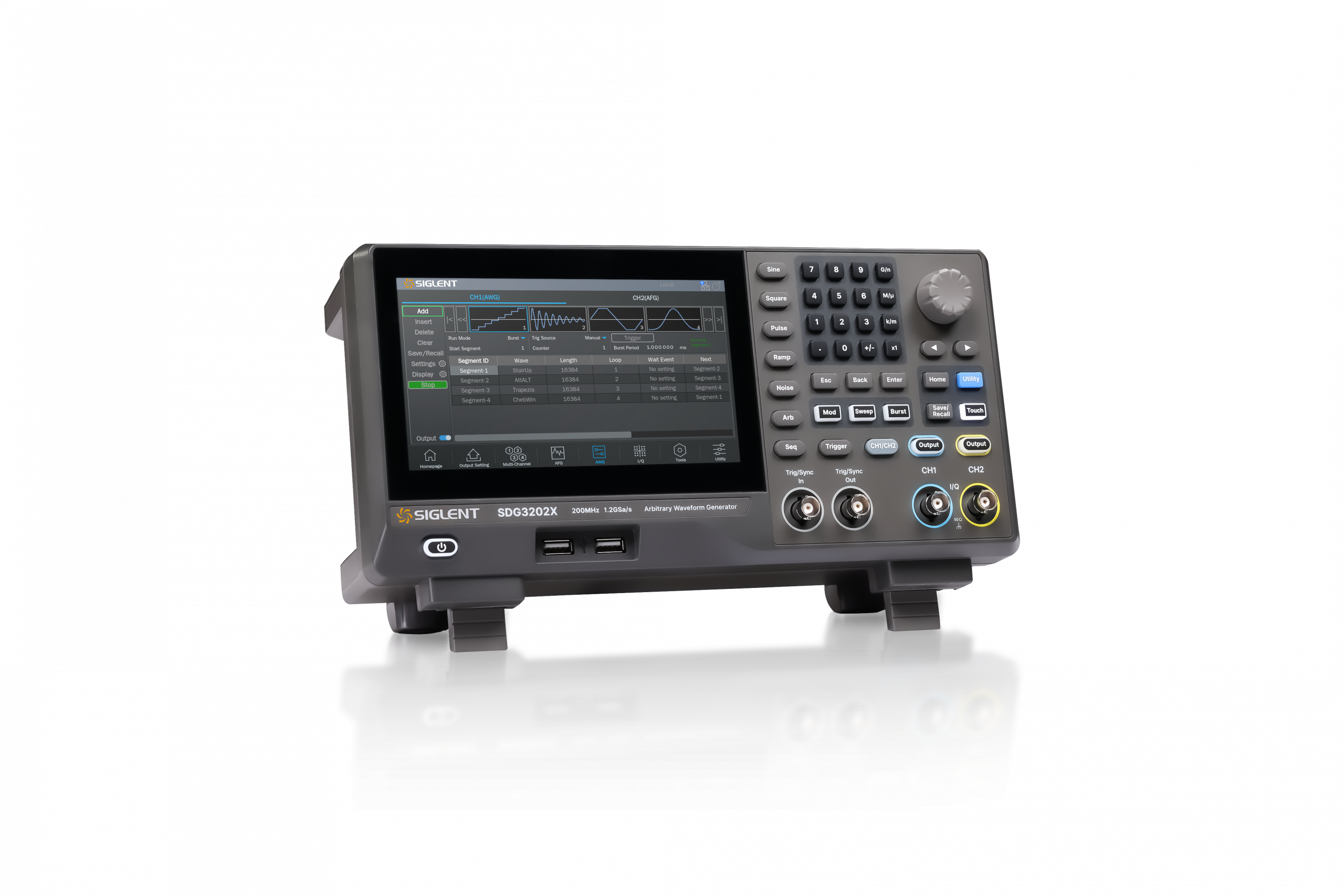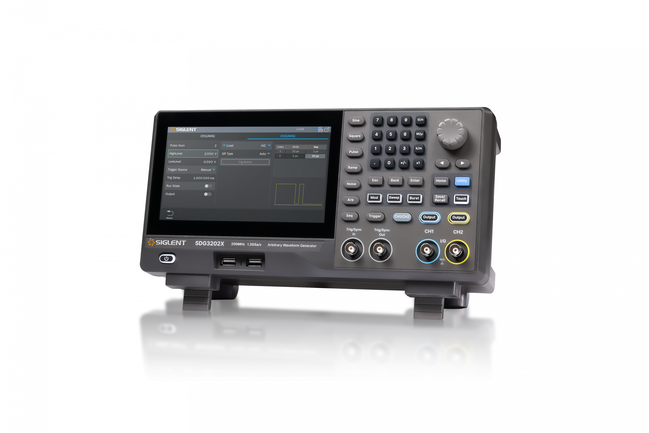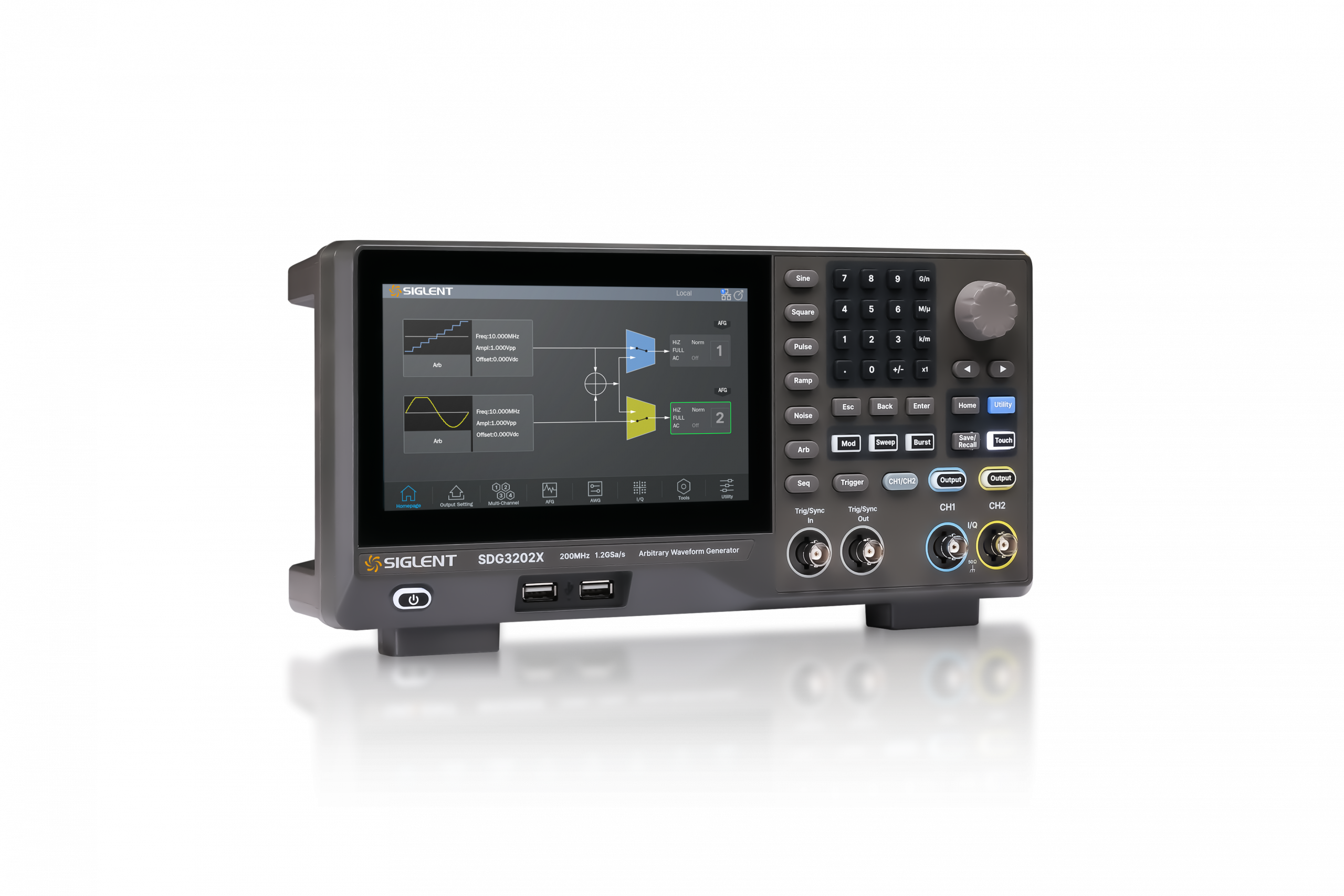 מחולל צורות הגל הפונקציונליות/שרירותיות בעל שני ערוצי סדרת SDG3000X בעל רוחב פס מרבי של 200 מגה-הרץ, מפרט מערכת דגימה מעולה של קצב דגימה של 1.2 ג'יגה-שנייה ורזולוציה אנכית של 16 סיביות.